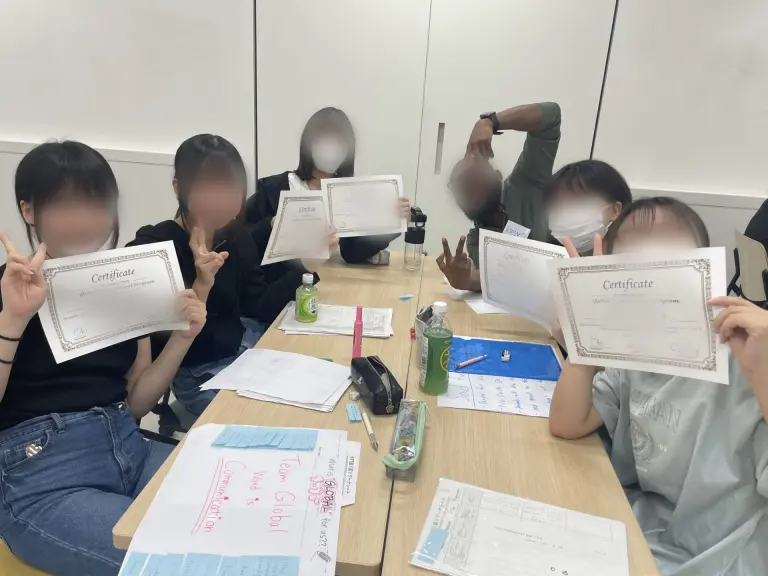 7月29日~31日の3日間、國學院大學渋谷キャンパスにてCCクラスの生徒を中心に国際交流プログラムに参加しました。参加者は66名。多国籍な留学生との交流を通して、様々な文化や価値観、考え方に触れ、視野を広げ、ありったけの英語の知識を振り絞っての会話で楽しくコミュニケーションをしていました。お昼休みには、大学のカフェでランチを楽しんだり、大学の博物館で展示されているアイヌの特別展を見に行ったりと充実した3日間を過ごせたようです。最終日には各グループのシニアバディから修了証書も受け取りました。