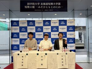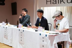 9月27日に滝川の三浦華園で句会「Haiku Bar」を、28日に紀伊國屋書店札幌本店インナーガーデンで歌会「短歌の庭-みそひともじのにわ-」を開催しました。俳誌『蒼海』の主宰 堀本裕樹氏と北海道を代表する歌人の山田航氏をゲストにお迎えし、歌人で本学国文学科教授の月岡道晴が司会を務める、公開句会・歌会です。参加者は事前に作品を応募し、作者を伏せた状態で好きな作品に投票。当日は投稿された作品をめぐり、選者と参加者が互いに批評し合いました。