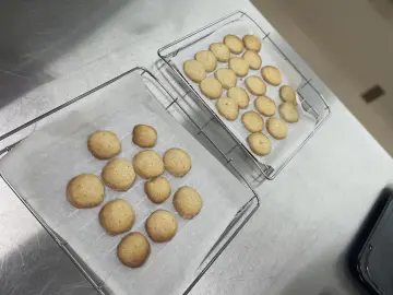 25日、26日と両日11時配布予定です。クッキーか小物かどちらかを選んでいただきます。もし両方ご希望の場合は、再度並んでいただければどちらも手に入るかもしれません。数もある程度ご用意していますのでお楽しみに!無くなり次第終了です。