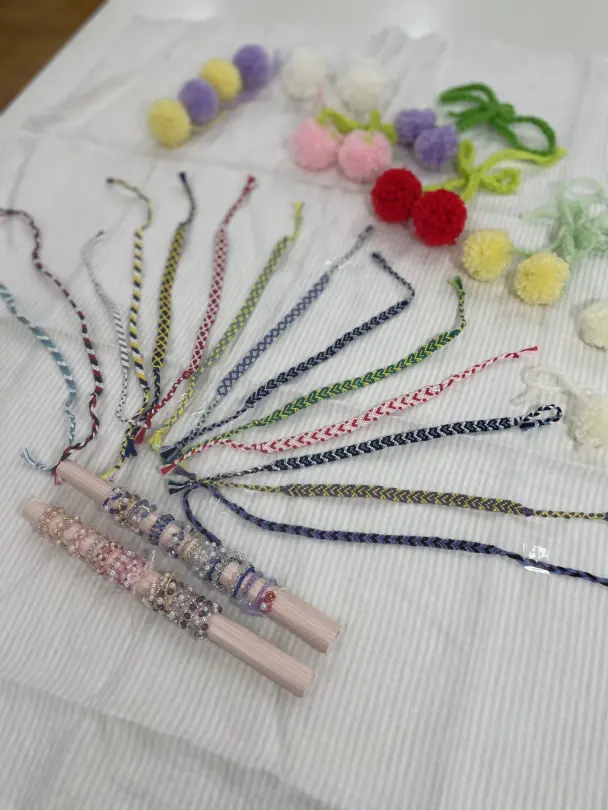 家庭科部では中学生と一緒に、久我山祭に向けて配布するクッキーの試作と小物作りに励んでいます。材料にもこだわり、美味しくて体に優しいお菓子作りを心がけています。今年は去年よりバージョンアップでお客さんを迎える予定です。小物はビーズ、ミサンガ、さくらんぼのボンボンなどがあります。