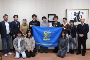 10月16日に「総教まちづくりプロジェクト」を代表して、総合教養学科2年 静谷政徳さんが佐々木和代会長より助成金を受け取りました。