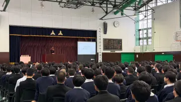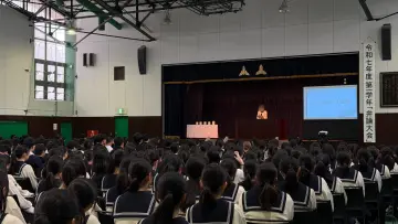 会場には高校1年生の生徒全員と教職員、合わせて約450名が集結しました。