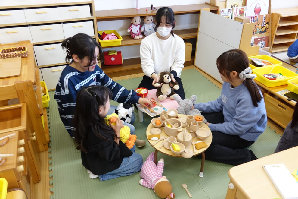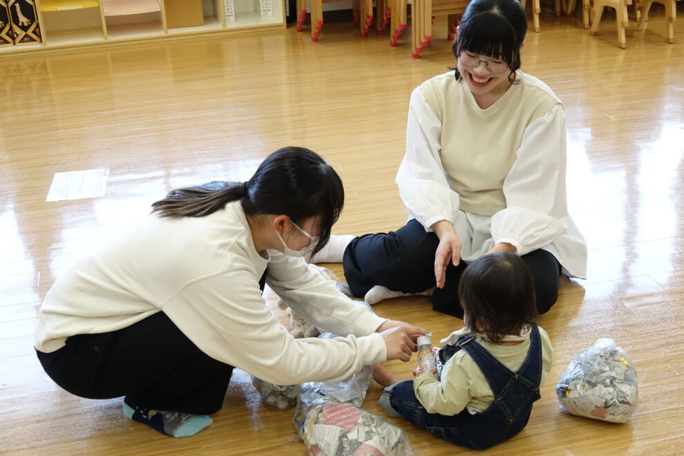 最初は緊張していた子どもたちも時間が進むにつれて心を開いてくれ、保護者の方のもとを離れて学生と遊んでいる様子が多く見受けられました。終始、和やかな雰囲気が広がっていました。学生たちにとっては小さな子どもと関わることができる貴重な経験となりました。