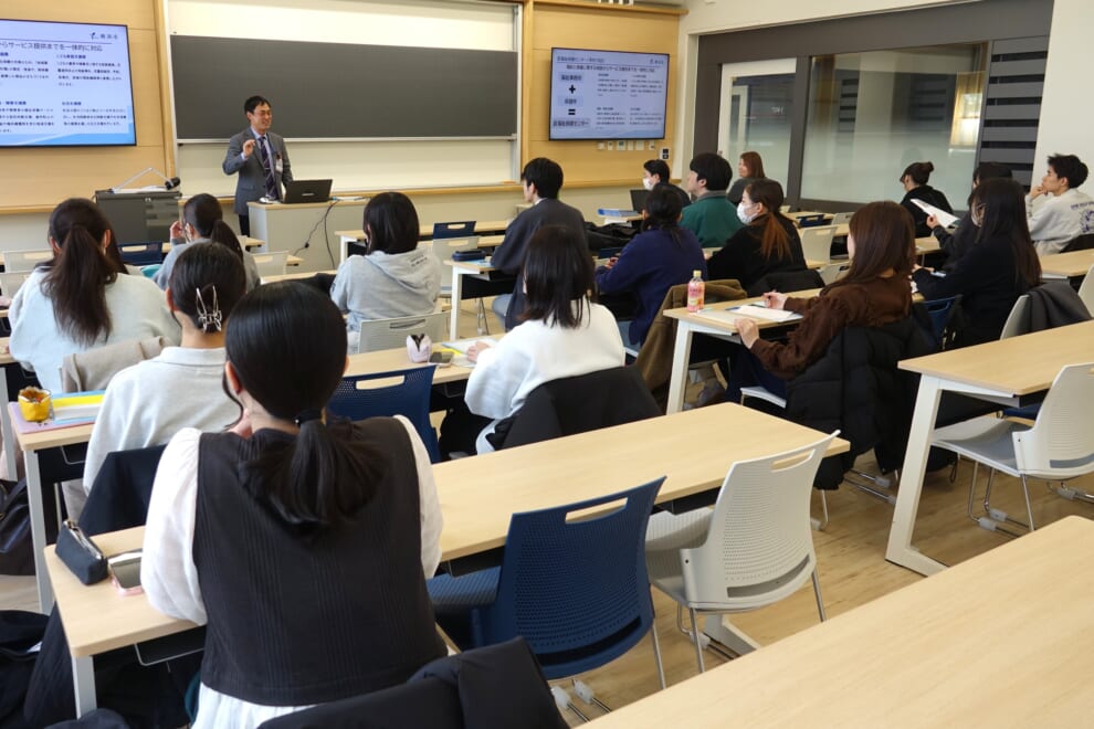 3/10(火)14:00より1407教室において、横浜市採用試験ガイダンスが行われました。横浜市人事委員会事務局、こども青少年局、健康福祉局の職員の方に来校していただき、横浜市職員【保育士】【社会福祉】の採用区分に関する概要及び仕事について説明していただきました。1年生から3年生が参加し、真剣に聞いていました。