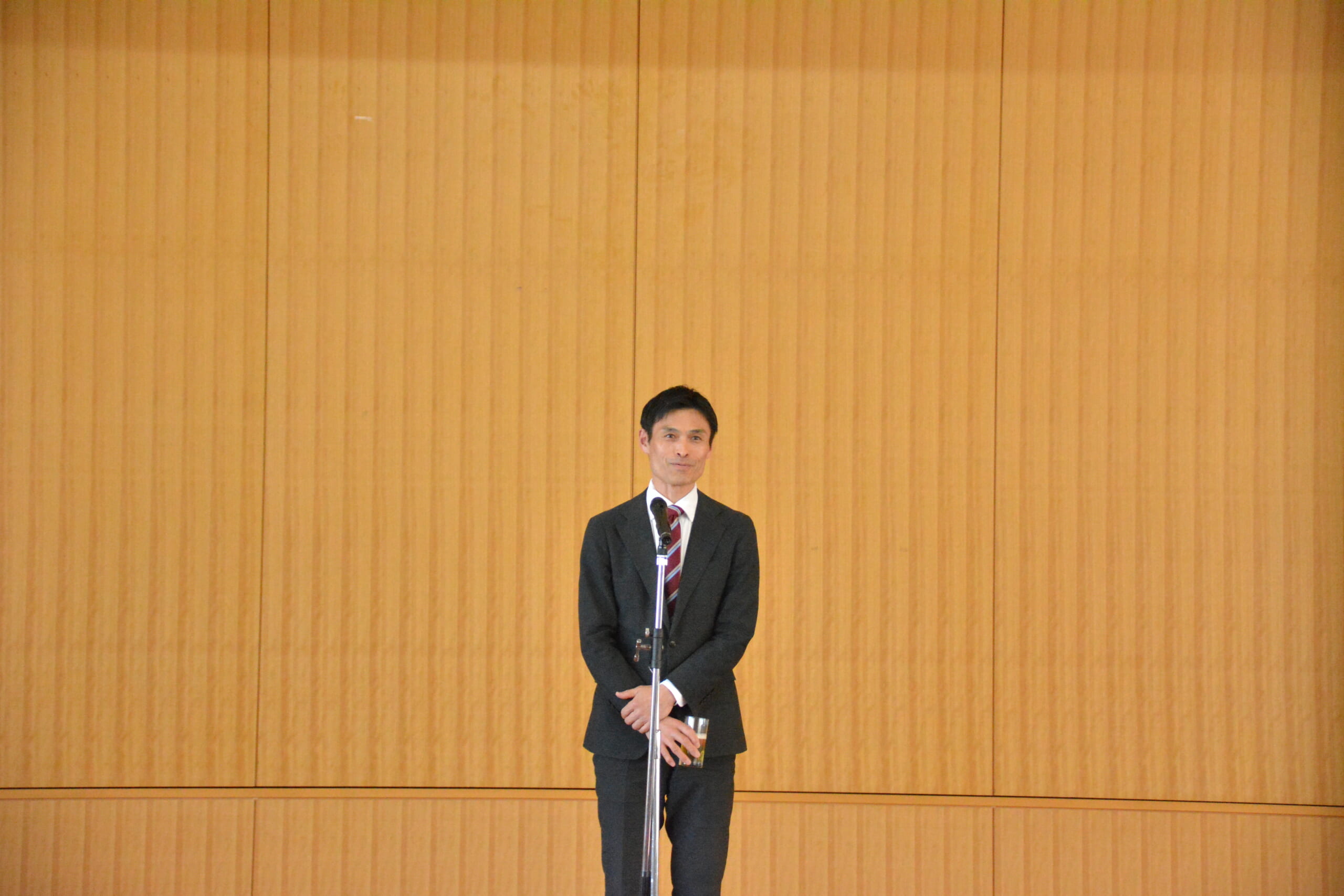 学内幹事の仙北谷穂高・大学事務局長が、同会役員と学生の今後の活躍を祈念し、乾杯の音頭を執りました。乾杯後は、歓談の時間が流れ、学生たちの活躍などについて、出席者同士で意見が交わされました。