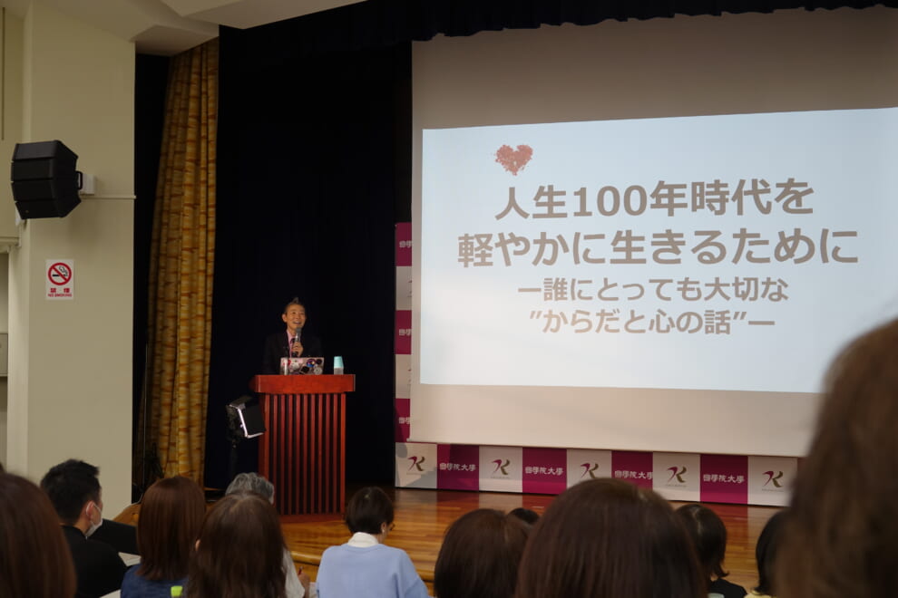 4/11(土)14:00より講堂にて、地域ヘルスプロモーションセンター主催のBloomingレクチャー「達人から学ぶ人間開発 ~自分を拓く、未来を拓く~」が開催されました。本レクチャーは、新年度である4月に各界の達人から、この春を踏み出す新たな一歩を後押しし、悩んだときやこれからの生活につながるきっかけとなる言葉を伝えたいという願いで、2022年度より開催されています。