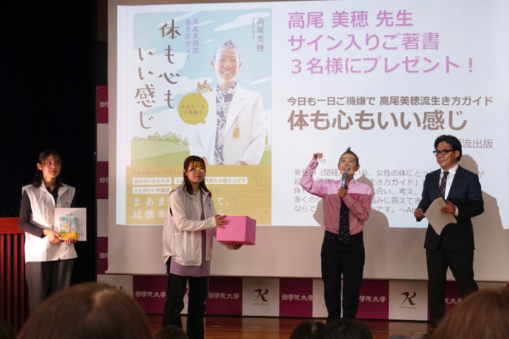 その後は、来場者を対象とした抽選会が行われ、当選者にはサイン入り著書やサイン色紙が贈られました。